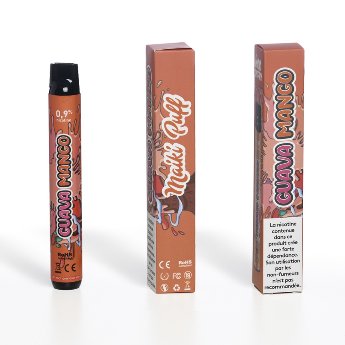 La Maiki Puff est une cigarette électronique jetable de 600 puffs, légère et pratique en main. Profitez de son format cylindrique pour l'emporter partout avec vous à tout instant.