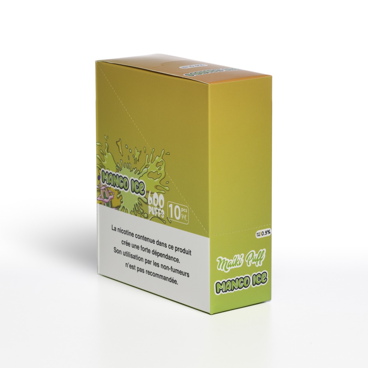 La Maiki Puff est une cigarette électronique jetable de 600 puffs, légère et pratique en main. Profitez de son format cylindrique pour l'emporter partout avec vous à tout instant.