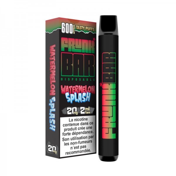 La Frunk Bar c’est la nouvelle façon de vapoter. Avec son goût incroyable Watermelon Splash, profitez d’une pause vapotage plus que méritée ! Le bon goût rafraîchissant de la pastèque avec sa version « ice », c’est tout le goût de l’été dans une salle bouffée. Ce petit goût sucré et l’exactitude du parfait vous laissent sans voix.